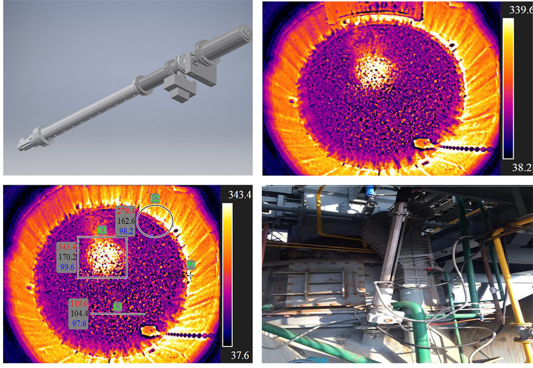 主體設(shè)備通過爐體安裝件安裝在高爐爐頂氣封罩上,賣方根據(jù)買方所安裝的定位孔尺寸與角度設(shè)計(jì)熱成像系統(tǒng)。