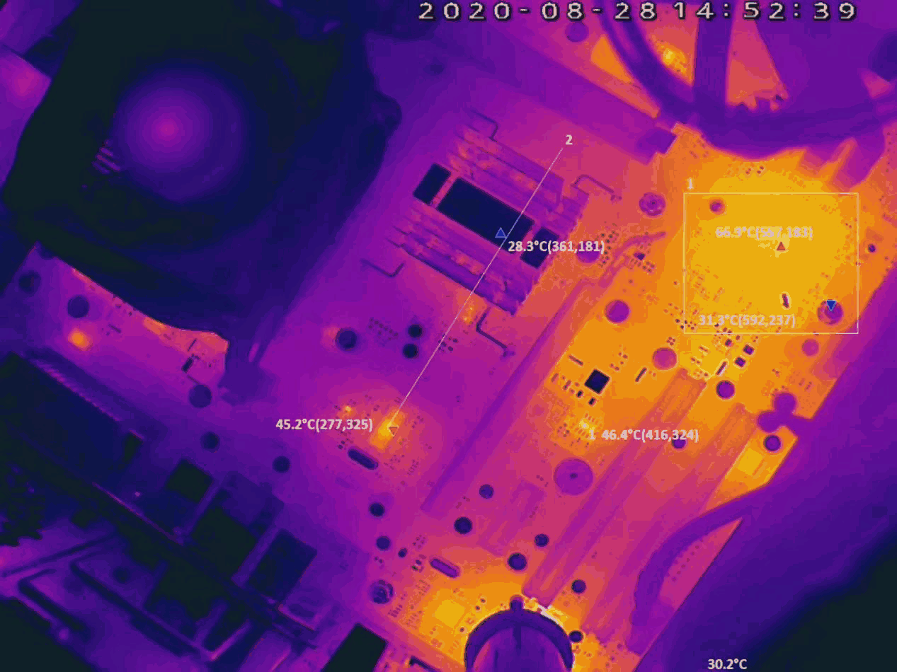 電路板中各元器件在工作狀態(tài)下散發(fā)的熱量有固定范圍,當(dāng)電路板功能正常但功耗(發(fā)熱量)增加,溫度上升時(shí),說明電路板出于異常狀態(tài);電路板體積小結(jié)構(gòu)復(fù)雜,傳統(tǒng)檢測(cè)有不可表面的局限性,利用紅外熱成像技術(shù)檢修故障電路有絕對(duì)優(yōu)勢(shì);熱成像系統(tǒng)用來產(chǎn)生和獲取生產(chǎn)線上電路板的熱成像信息,檢測(cè)PCB在制造過程中的缺陷和缺陷防止,通過改正工藝來消除或減少缺陷,并為生產(chǎn)工藝的調(diào)整提供必要的依據(jù)。這是一種無(wú)損在線檢測(cè)技術(shù),能夠快速定位發(fā)熱缺陷位置: