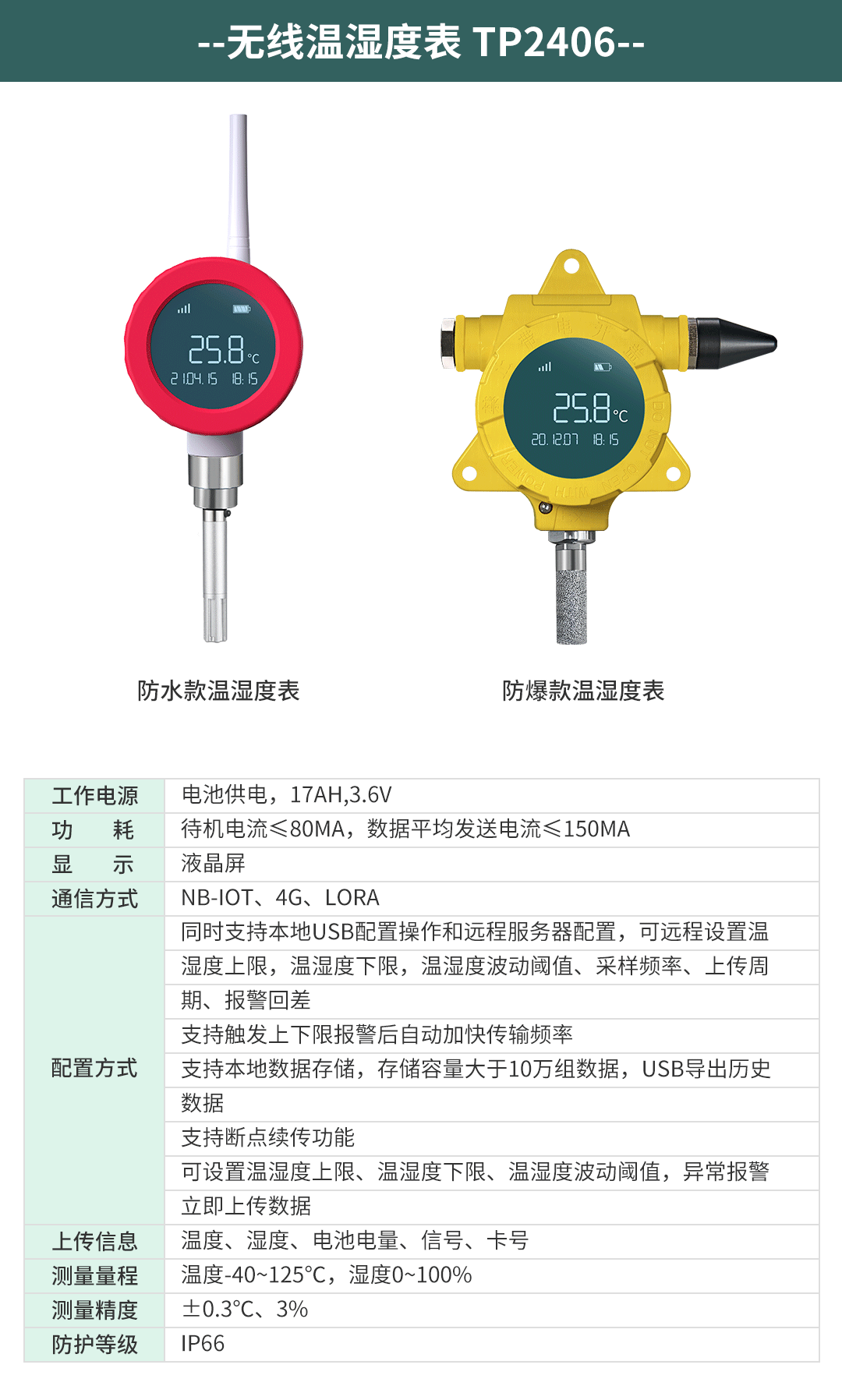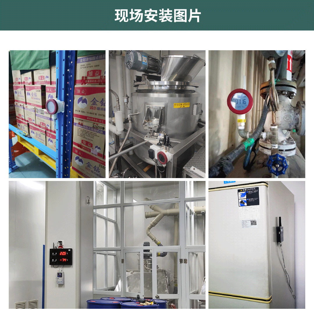 根據(jù)客戶不同的場景使用不同的傳感器進(jìn)行測量,比如冰箱或者冷庫的溫濕度采用TP500或者TP2406進(jìn)行測量,車間內(nèi)溫濕度可以采用TP500或者TP502進(jìn)行測量,管道蒸汽溫度或者管道油溫和水溫采用TP2402進(jìn)行測量,蒸汽壓力、油壓、水壓、氣壓等壓力采用TP2401進(jìn)行測量,生產(chǎn)車間的潔凈度采用TP505進(jìn)行測量
