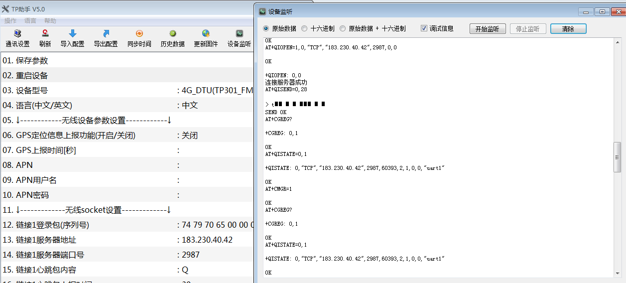 配置完參數(shù)后,通過點(diǎn)配置軟件監(jiān)聽,可以提示已鏈接成功。