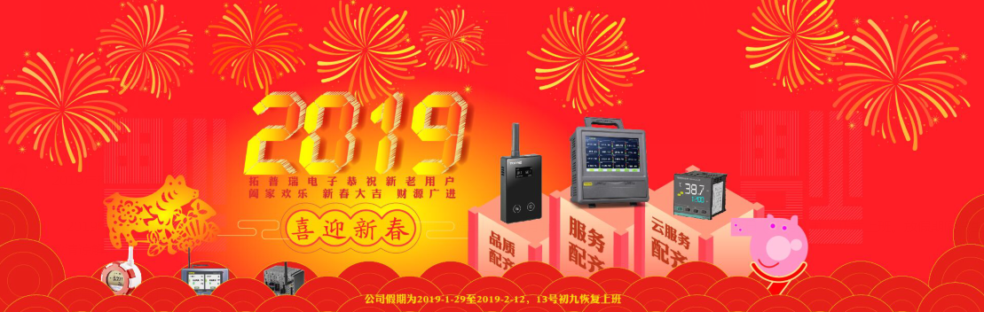 2019年拓普瑞春節(jié)假期安排如下:2019年1月29日(臘月二十四)至2019年2月12日(正月初八),2019年2月13日(正月初九)正式上班。放假期間產(chǎn)生的訂單將在假期后統(tǒng)一發(fā)出,敬請(qǐng)諒解!