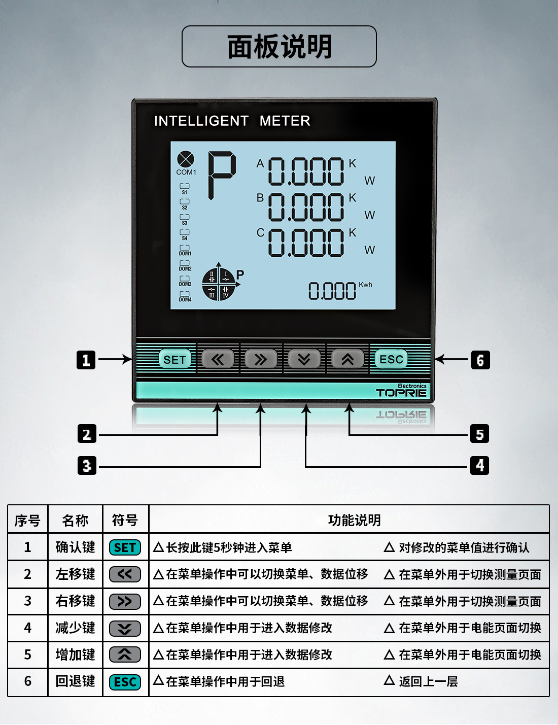 智能無線三相功率表多功能液晶顯示電力、無線遠(yuǎn)程抄表,提供免費(fèi)遠(yuǎn)程監(jiān)控平臺(tái),能測量項(xiàng)目中三相電力網(wǎng)絡(luò)電壓,電流,有功功率,無功功率,頻率,功率因數(shù)等,共28個(gè)電參數(shù)。