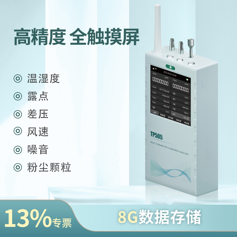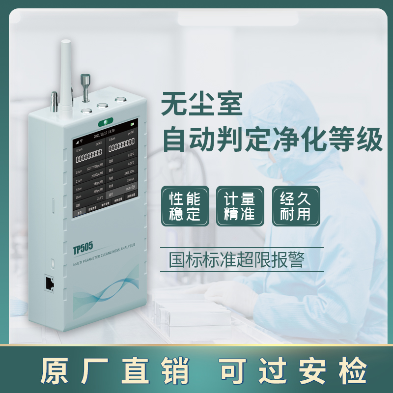 產(chǎn)品簡介:TP505潔凈度檢測儀是業(yè)內(nèi)首款在線式、手持式二合一的潔凈度測試儀表; 集塵埃粒子、溫濕度、壓差、露點溫度、風(fēng)速等6種可測參數(shù)、11個數(shù)值顯示為一體 基本滿足各種環(huán)境測試。