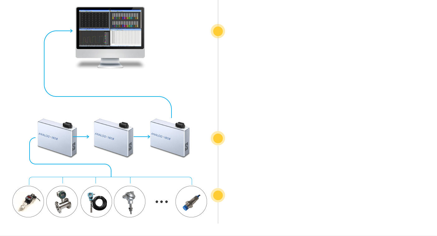 :采用工業(yè)級RS485-1608數(shù)據(jù)采集卡接口小巧便攜,可導(dǎo)軌安裝。專業(yè)采集電壓、電流、溫度、濕度、壓力、振動、頻率、流量、液位等信息。