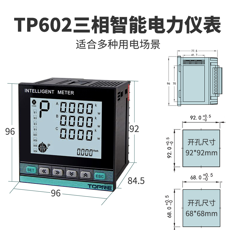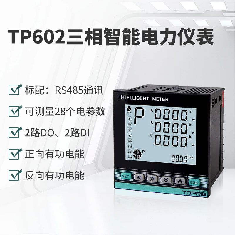 產(chǎn)品簡介:可檢測三相電壓、電流、有功、無功 、功率因數(shù)、頻率、電度等,2DO/2DI,帶有RS485接口,通過按鍵來實現(xiàn)參數(shù)設(shè)置和控制。