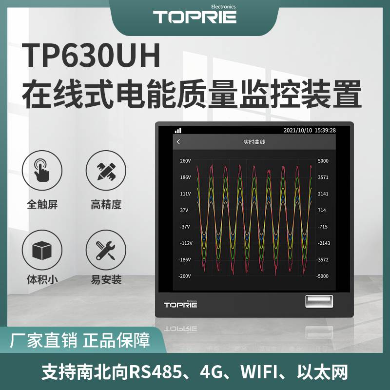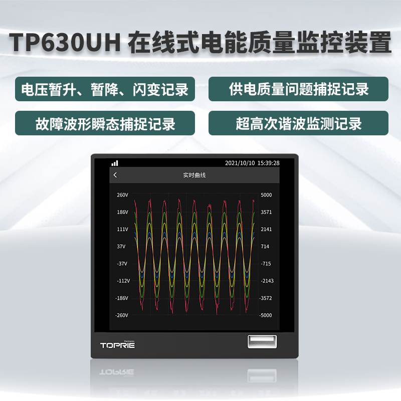產(chǎn)品簡介:TP630UH在線式電能質(zhì)量監(jiān)控裝置按國家標(biāo)準(zhǔn),集諧波分析、波形采樣、電壓暫降/暫升/中斷記錄、閃變監(jiān)測、電壓不平衡度監(jiān)測、 波形的瞬態(tài)捕捉、事件記錄、測量控制多功能為一體。