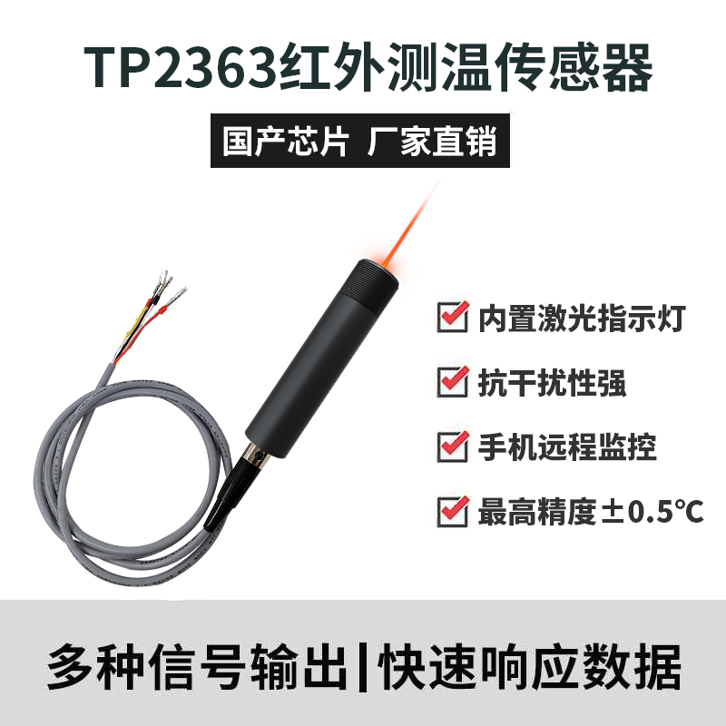 產(chǎn)品簡介:TP2363紅外溫度傳感器采用國產(chǎn)智能芯片,廠家直銷;測溫精度高且性能穩(wěn)定;多種信號輸出;快速響應(yīng)溫度數(shù)據(jù);可自調(diào)發(fā)射率;搭配智能采集設(shè)備可無線遠(yuǎn)傳&遠(yuǎn)程控溫