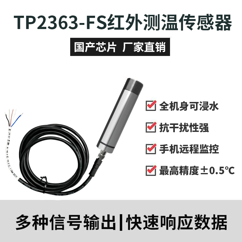 產(chǎn)品簡介:TP2363-FS紅外溫度傳感器采用純國產(chǎn)智能芯片,廠家直銷;測溫精度高且性能穩(wěn)定;多種信號輸出;快速響應溫度數(shù)據(jù);可自調(diào)發(fā)射率;搭配智能采集設備可無線遠傳&遠程控溫