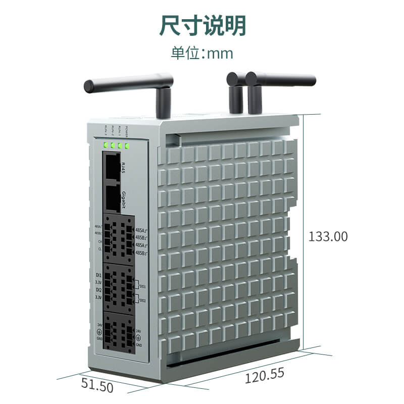 I/O接口:1路千兆WAN口、1路百兆LAN口 3路RS485串口、1路CAN口