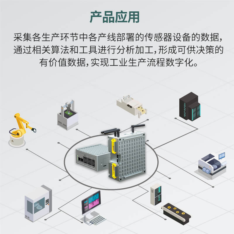 應(yīng)用領(lǐng)域:M150U邊緣計(jì)算網(wǎng)關(guān)支持采集各生產(chǎn)環(huán)節(jié)中各產(chǎn)線部署的傳感器設(shè)備的數(shù)據(jù),實(shí)現(xiàn)工業(yè)生產(chǎn)流程數(shù)字化