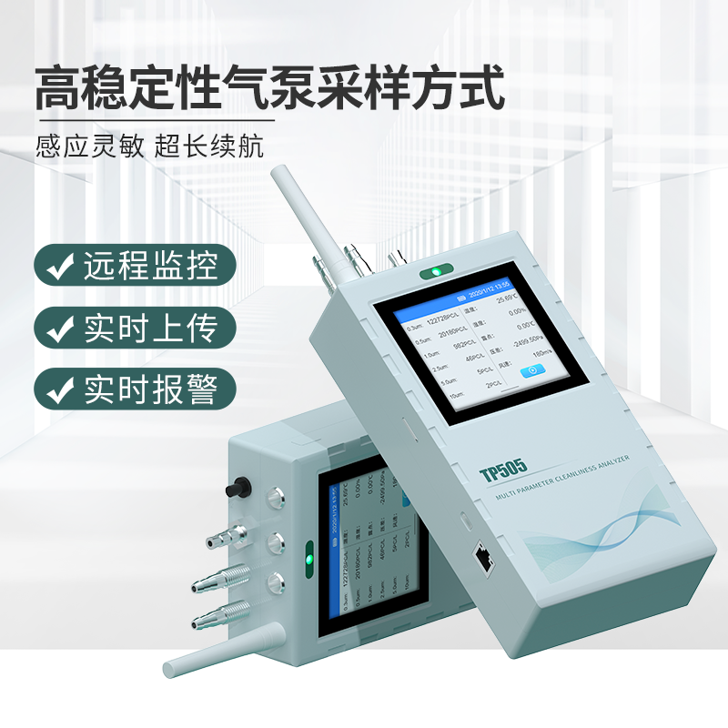 產(chǎn)品簡介:TP505塵埃粒子計數(shù)器是業(yè)內(nèi)首款在線式、手持式二合一的潔凈度測試儀表; 集塵埃粒子、溫濕度、壓差、露點溫度、風(fēng)速等6種可測參數(shù)、11個數(shù)值顯示為一體 基本滿足各種環(huán)境測試。